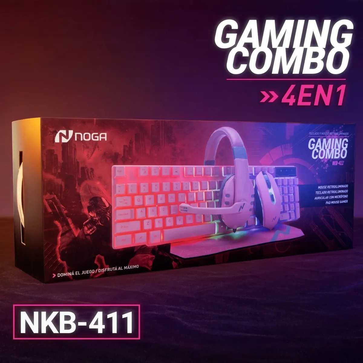 NKB-411 Gaming Combo: Rendimiento y Estilo para Jugadores de Alto Nivel El NKB-411 Gaming Combo está diseñado para brindarte una experiencia de juego sin igual, con un teclado, mouse, auriculares y mouse pad de alta calidad. ¡Todo lo que necesitas para alcanzar el máximo rendimiento en cada partida! Características destacadas: Teclado Gamer - 104 teclas elevadas en español, diseño ergonómico y 12 teclas multimedia con acceso rápido mediante la tecla FN. Personalización total con 3 combinaciones RGB para un estilo único. Mouse Gamer - 4 botones y scroll con selector de DPI ajustable a 800/1600/2400/3200 para máxima precisión. Retroiluminado con 7 colores para adaptarlo a tu estilo. Auriculares Gamer - Diámetro de speaker de 40 mm para un sonido envolvente y micrófono con giro de 120 grados para una comunicación clara y precisa. Acolchados y vincha ajustable para comodidad durante largas sesiones. Mouse Pad - Paño de microfibra de goma antideslizante para un deslizamiento suave y controlado. Apto para cualquier superficie y con un tamaño perfecto para un control total del mouse. Conexión USB -Conexión rápida y confiable para el teclado, mouse y auriculares, sin interferencias ni retrasos. Acolchado Cómodo -Para las orejas y las muñecas, asegurando que puedas jugar durante horas sin molestias. Tamaño Compacto y Funcional ? El teclado tiene medidas de 435 x 130 x 35 mm, ofreciendo una experiencia de juego cómoda y accesible. Medidas: Teclado: 435 x 130 x 35 mm. Mouse: Ajustable a tu comodidad. Auriculares: Diámetro de speaker de 40 mm. Mouse Pad: 287 x 244 x 3 mm, ideal para movimientos rápidos. ¡Con el NKB-411 Gaming Combo tendrás todo lo necesario para dominar el juego con estilo y precisión!
